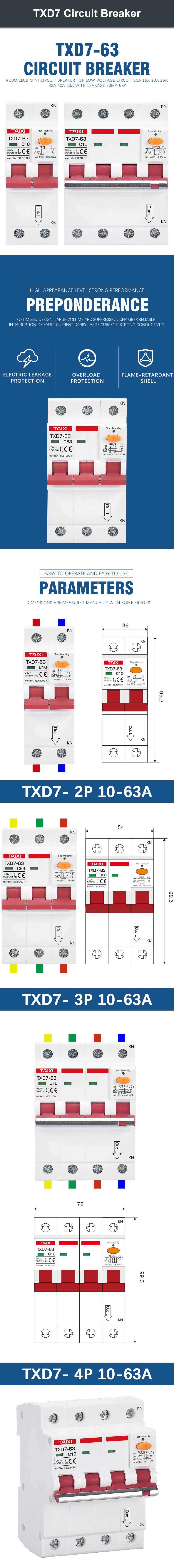 TXD7 6-63A Circuit Breaker Leakage Protection