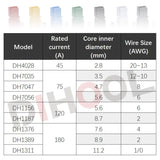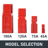 INTRODUCTION Rated current: 45A/75A/120A/180A Color: White/Black/Red/Green/Yellow/Blue/Grey Wire Diameter : Various American Standard Wire Diameters Interface type: AC or DC Rated voltage: 600V Working Temperature:-25℃-105 ℃ Shell material: PC UL94V0 Terminals material: Silver-plated Copper Shrapnel material: 65Mn Steel Package: 1 piece connector contains 1 plastic shell and 1 silver-plated copper terminals TECHNICAL PARAMETERS Model Rated current (A) Terminal inner diameter(mm) Match...