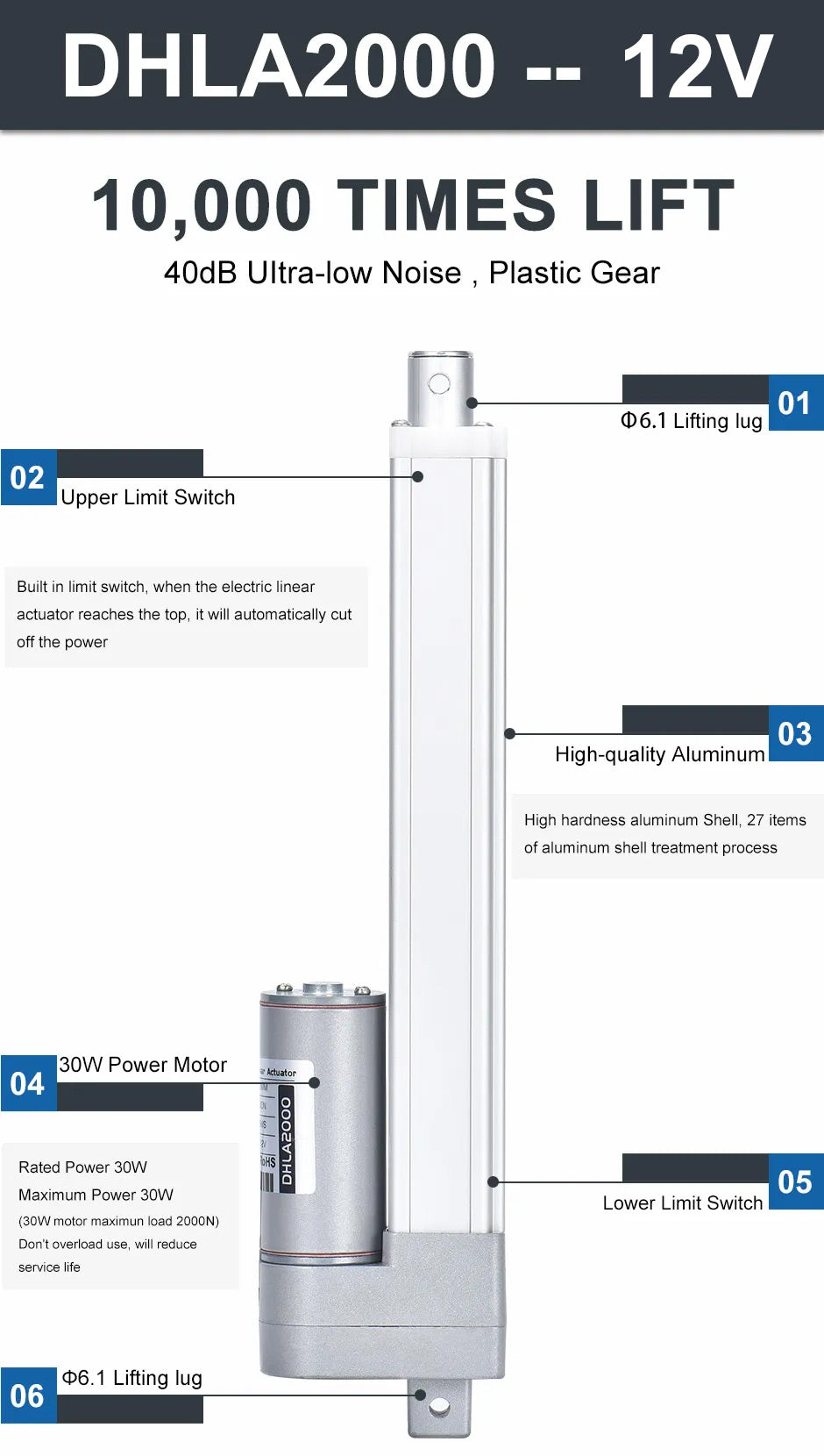 Electric Linear Motion Actuator 12V DC Motor 2000N 440LB Load - DHLA2000-A1