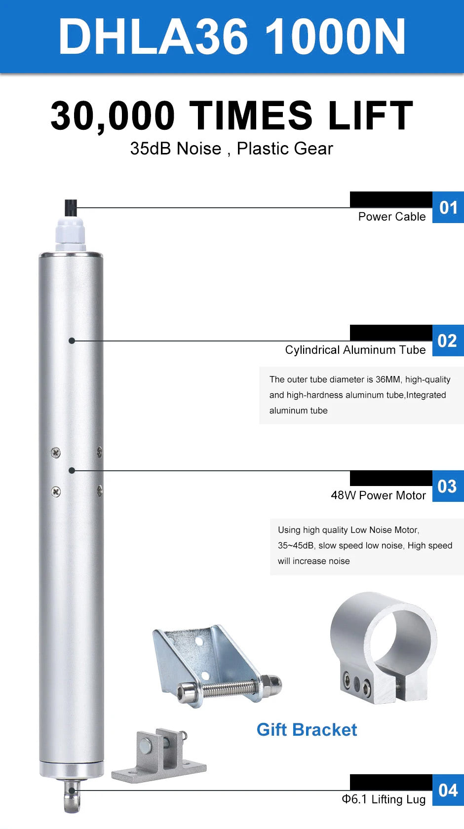 Electric Linear Motion Actuator 24V DC Motor 1000N 220LB Load - DHLA36
