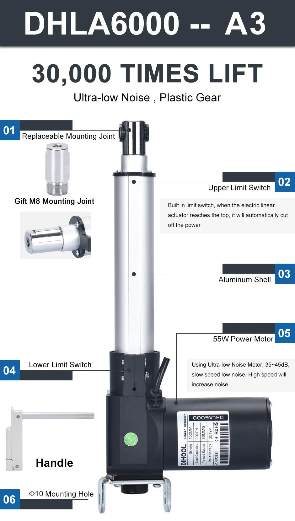 Electric Linear Motion Actuator 24V DC Motor 6000N 1320LB Load - DHLA6000-A3