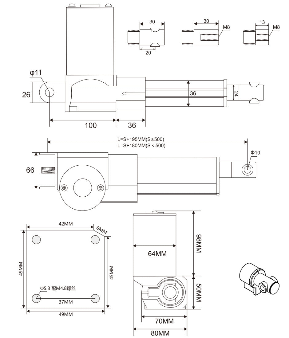 Note: The stroke can be customized such as 650MM, 70MM, etc., And it will take 3-7 days.