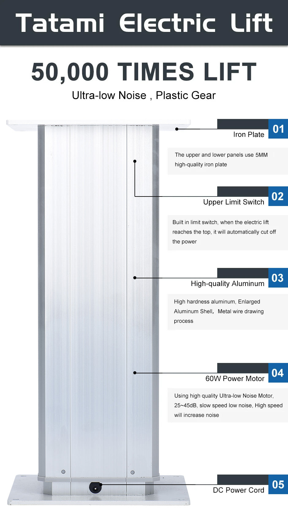 DHLCE-AL 2 Stage Electric Lifting Column - AL Panel 1000N 220LB Load - DHLCE-420