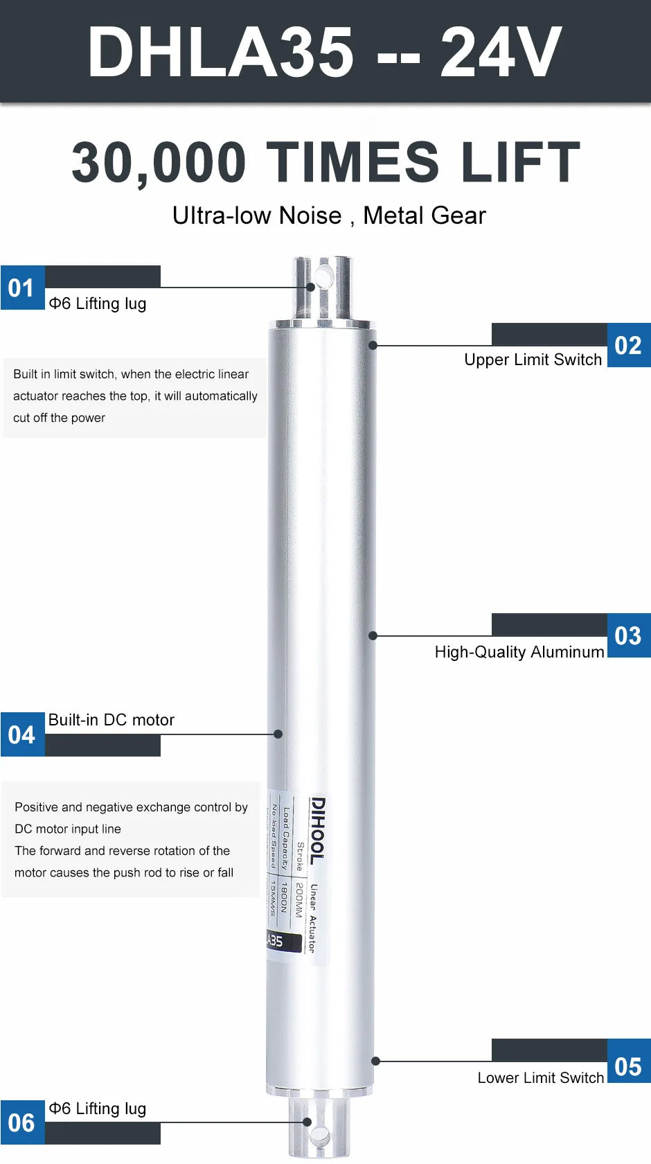 Electric Linear Motion Actuator 24V DC Motor 2000N 440LB Load - DHLA35-A1