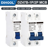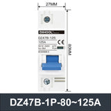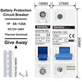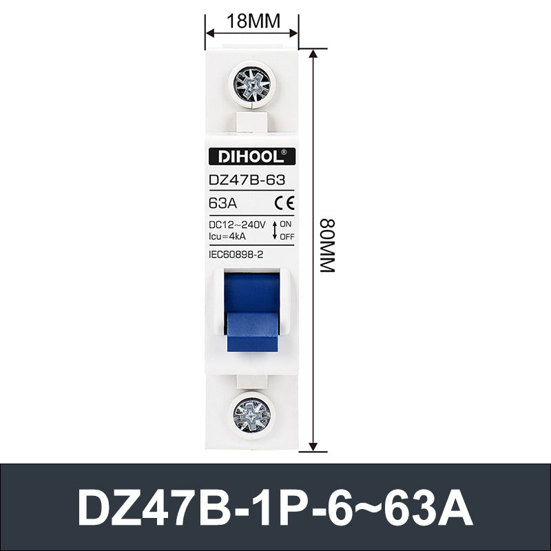 DZ47B battery miniature circuit breaker is a new product specially developed for low-voltage batteries such as photovoltaic solar UPS. DZ47B battery circuit breaker supports overload protection between 12-240V and short-circuit protection between 36-240V. The battery circuit breaker adopts B-curve (3-5ln) tripping capability, sensitive to tripping; battery circuit breaker has 1 pole to protect the positive or negative pole, 2 poles to protect the positive and negative poles at the same time, 1P+1P switches 2 positive power supplies or 2 negative power supplies (switching standby Power supply and common power supply), 2P+2P switching 2 battery switches (switching standby power supply and common power supply), four specifications; the minimum current of the battery switch can be 1A, and the maximum current can reach 150A.