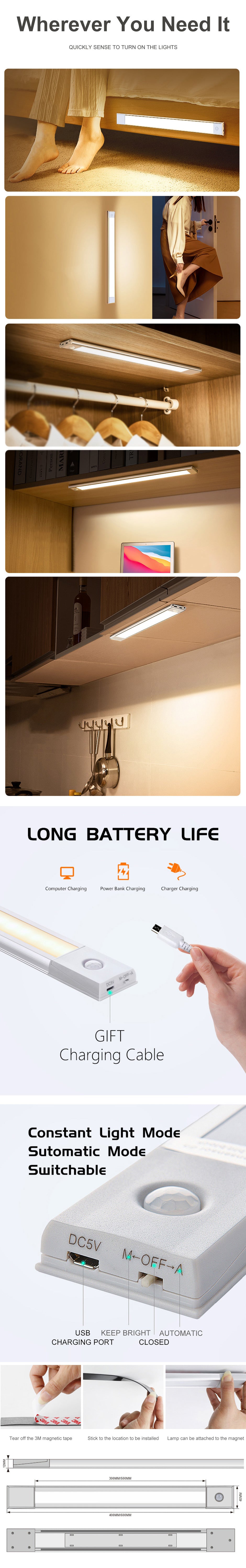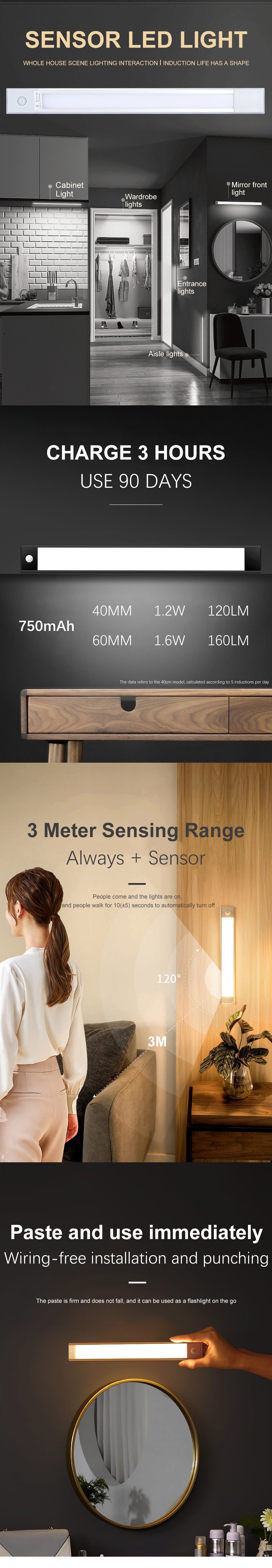 GY1902 Sensor LED Light 40/60CM Induction Lamp 6000K/3000K