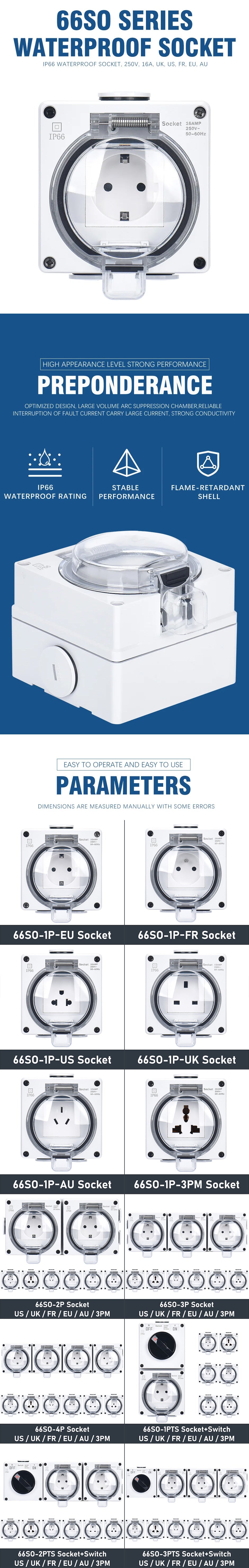 66SO Socket IP66 Waterproof With Switch US/3PM/UK/FR/EU/AU