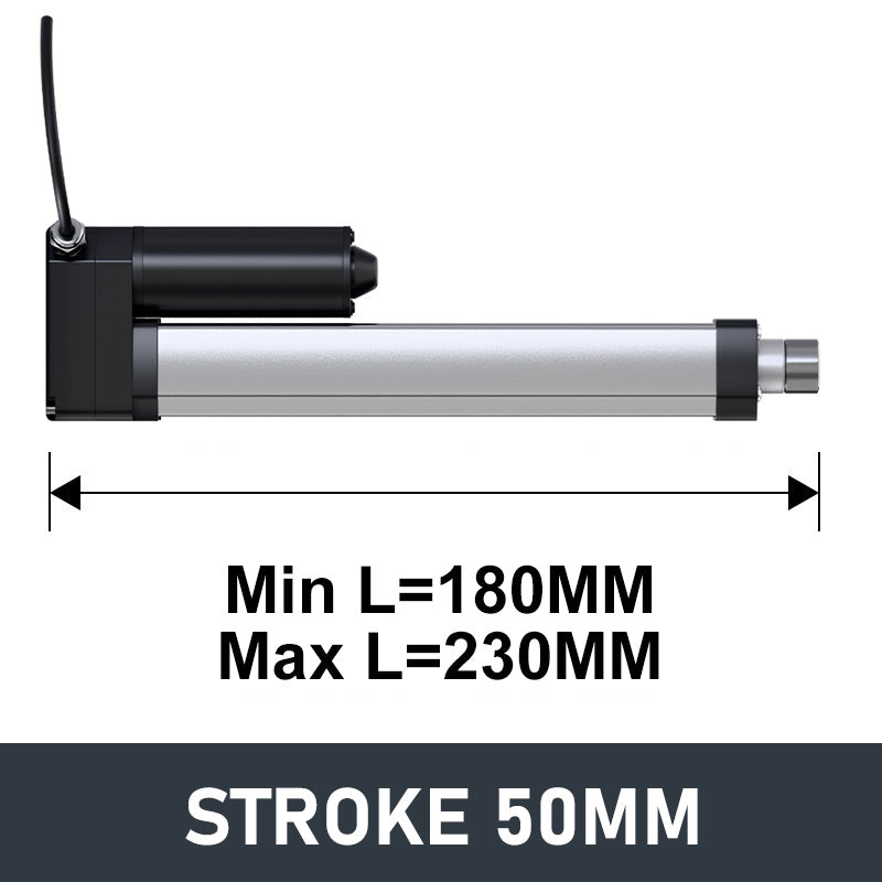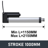 Note: The stroke can be customized to 650MM, 750MM, etc., and it takes 3 to 7 days. TECHNICAL PARAMETERS Voltage DC20~32V No-load Speed (MM/S) 5 10 16 Load Pull Capacity(N) 4000 2500 2000 Load Push Capacity(N) 4000 2500 2000 Self-locking Capacity(N) 6000 3000 2400 Stroke Length 50-1000MM (≥800MM Stroke Max...