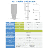 TECHNICAL PARAMETERS Model DHLCE260A DHLCE310A DHLCE360A DHLCE410A Panel Size 200*200 200*200 200*200 200*200 Model DHLCE260B DHLCE310B DHLCE360B DHLCE410B Panel Size 160*160 160*160 160*160 160*160 Initial Height H (MM) 265 315 360 420 Final Height FH (MM) 540 690 790 720 Stroke Length S (MM) 275 375 430 300 Section 3...