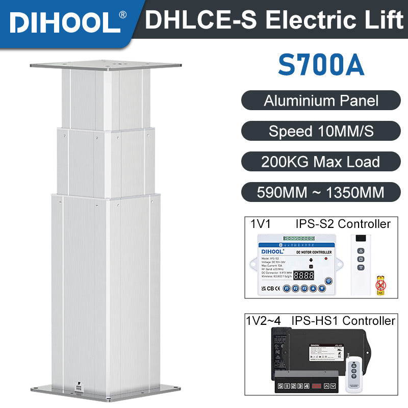 The DHLCE-S series three section electric lifting column is a high-performance product upgraded and optimized based on the DHLCE series. The shell is made of high-quality alumina alloy material, and the surface is treated with anodizing, which has excellent corrosion resistance, wear resistance, and weather resistance. The protection level reaches IP54, taking into account basic dust and waterproof requirements. The upper and lower installation covers are made of 10mm thick aluminum plates and adopt an innovative three section sleeve lifting structure to achieve simultaneous lifting and lowering of double-layer aluminum tubes. The stroke covers 300mm to 1200mm (supporting non-standard customization), and the operation is smooth and low-noise, with a noise level as low as 30dB. The core drive system is equipped with a DC24~30V wide voltage Hall encoder motor with a maximum power of 120W. In terms of intelligent control, the Hall encoder motor is linked with a high-precision sensor to achieve synchronous operation of multiple lifting columns to precise positioning within an error of ±3mm, and support the setting of any point in the stroke.