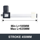 Note: The stroke can be customized such as 650MM, 70MM, etc., And it will take 3-7 days. TECHNICAL PARAMETERS Voltage DC12~19V No-Load Speed (MM/S) 5 6 9 12.5 28 Load Pull Capacity (N) 6000 4000 3000 2000 1000 Load Push Capacity (N) 6000 4000 3000 2000 1000 Self-locking Capacity (N)...