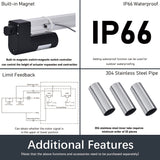 Hall Electric Linear Motion Actuator 29V-32V DC Motor 3000N 660LB Load - DHLA3000-A1-HALL-HS1-1V4