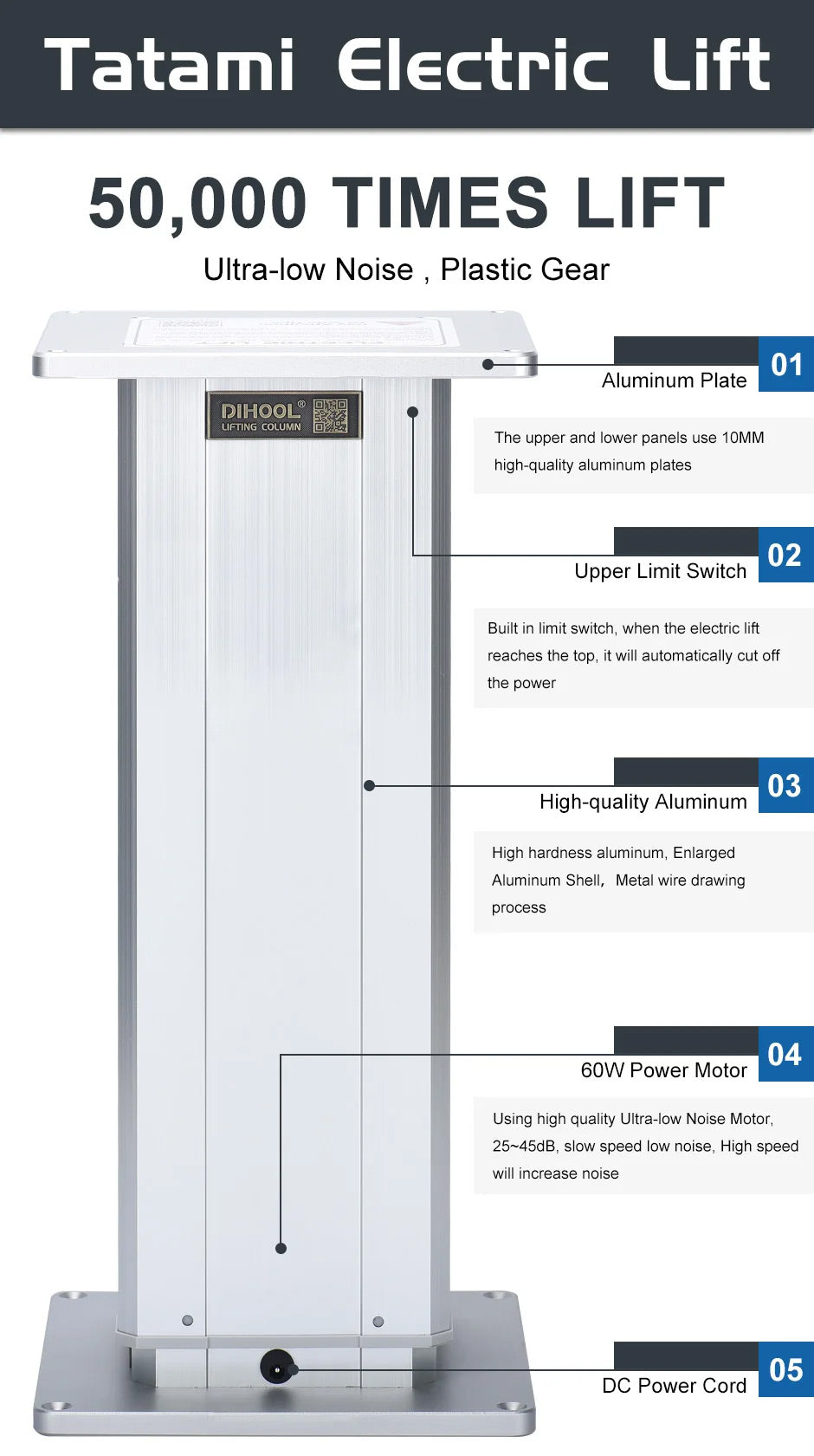 Tatami Lifting Column Aluminum Plate 12V DC Motor 800N 176LB Load - DHLCE-AL